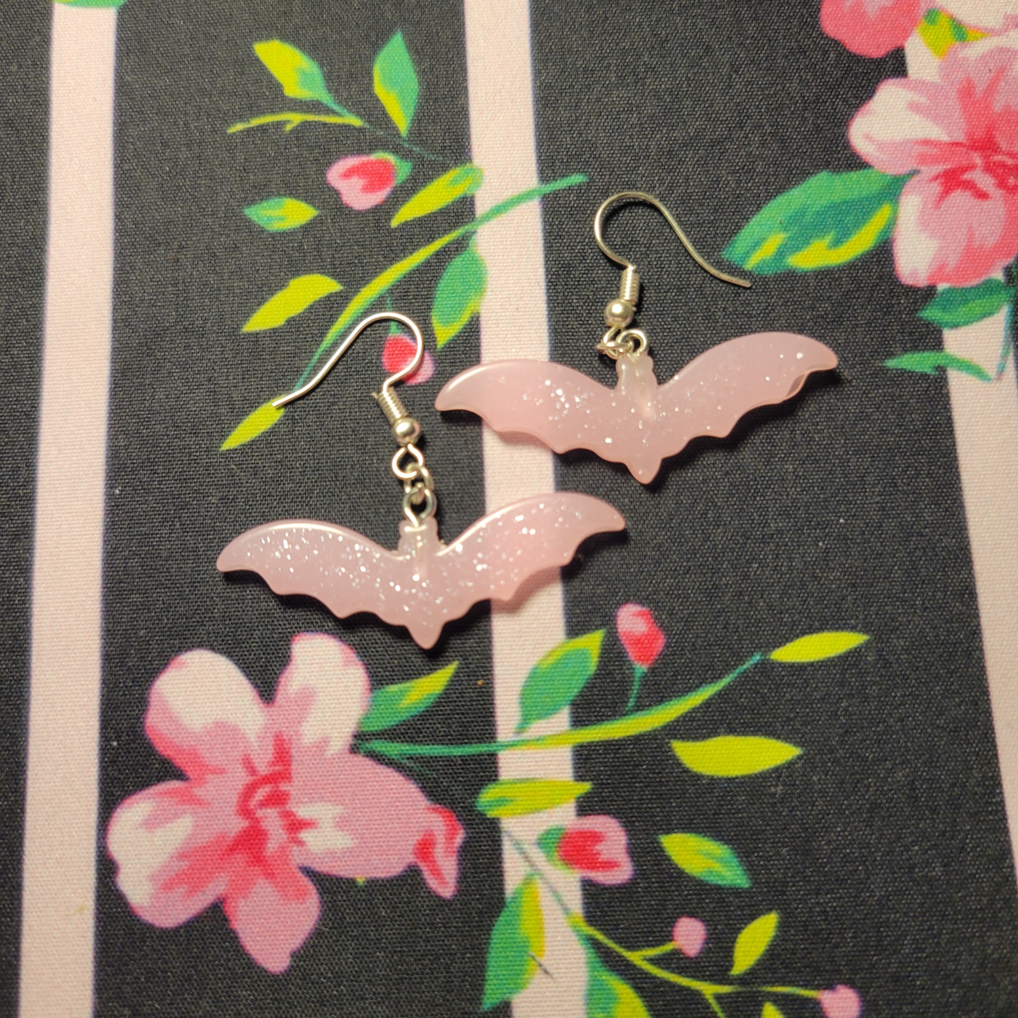 Pink Sparkle Bat Earrings